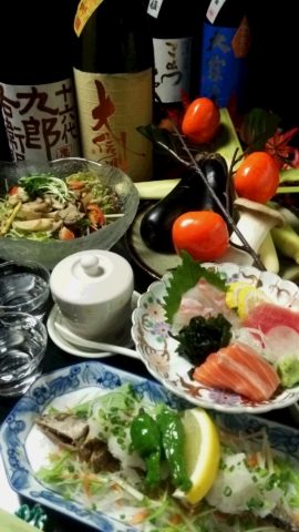 秋の野菜や魚介類を中心に使った料理の