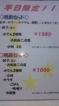 晩酌セット 1380円!晩飯セット 1000円!