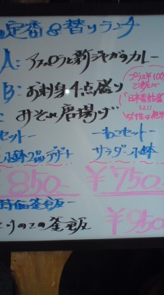 定番、日替にとらセット850円!(ライス、汁物、小鉢2つ、おしんこ、デザート付き)