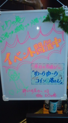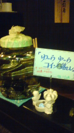 一円玉を落として、見事!つぼの中に入ったら1ドリンクサービス!!