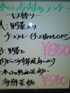 ☆野菜とチーズのカレー ☆肉団子と野菜の中華風餡掛け 各850円! ★本日の特価釜飯★ ☆海鮮釜飯 950円! 全てにセルフコーヒー、紅茶付きです☆